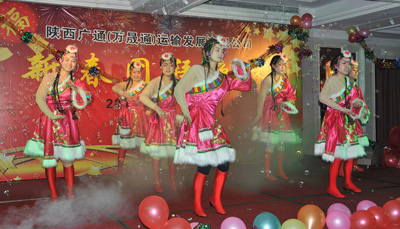 1月11日下午陜西廣通(萬(wàn)晟通)運(yùn)輸發(fā)展有限公司2012新春團(tuán)拜會(huì)在西安湘鄂情餐廳舉行。陜煤運(yùn)銷集團(tuán)財(cái)務(wù)經(jīng)理和學(xué)謙、運(yùn)輸中心王江、廣通公司董事長(zhǎng)任曉鵬、總經(jīng)理沈來萬(wàn)、廣通、萬(wàn)晟通各分公司主管以上人員及公司先進(jìn)個(gè)人近百余人參加了此次團(tuán)拜會(huì)。此次團(tuán)拜會(huì)除了招待晚宴外還有精彩的文藝演出與豐富的現(xiàn)場(chǎng)抽獎(jiǎng)活動(dòng)。